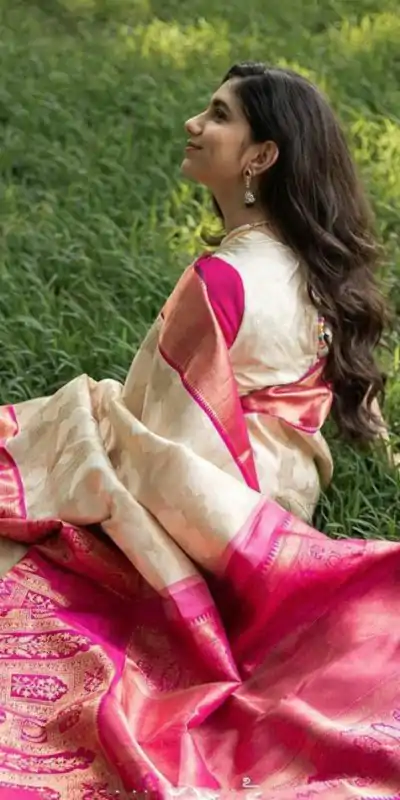 DDF 504 White Color Kashmiri Running Thread Zari Work Saree Casual, Party Wear, Events, Festivals Etc. Expected Delivery 4-6 Working Days 2499/-