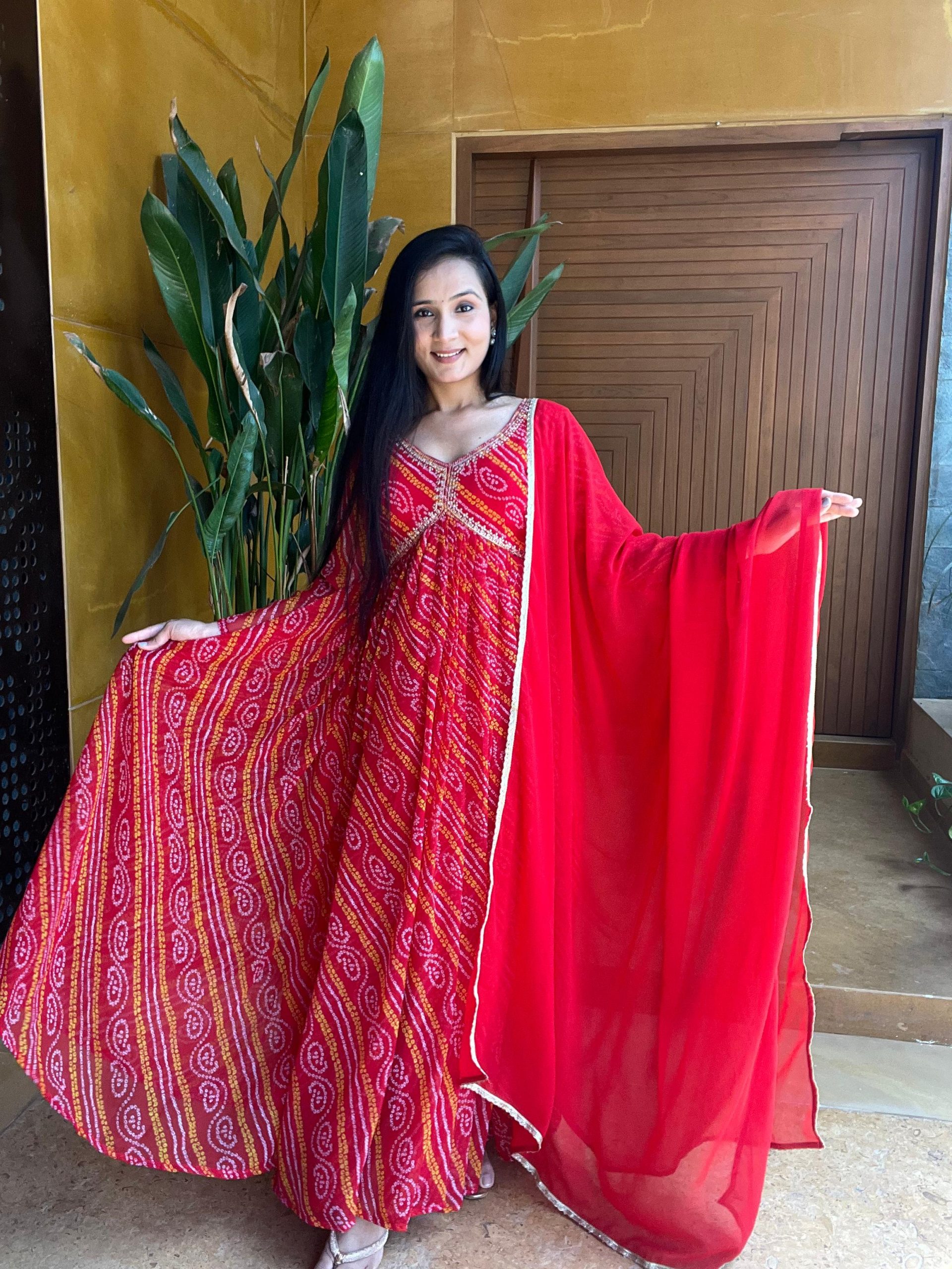 Ram 004 Red Color Pure Bandhini Embroidery Lace Work Gown Casual, Wedding, Party, Festive, Events Etc. Expected Delivery 4-6 Working Days @1899/-