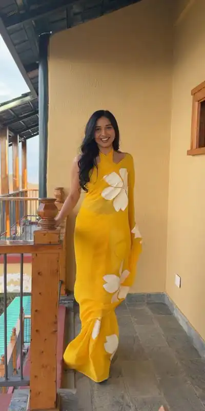 SC 264 Yellow Color Pure Soft Georgette Silk Design All Over Saree , Party Wear, Events, Festivals Expected Delivery 4-6 Working Days 1599/-