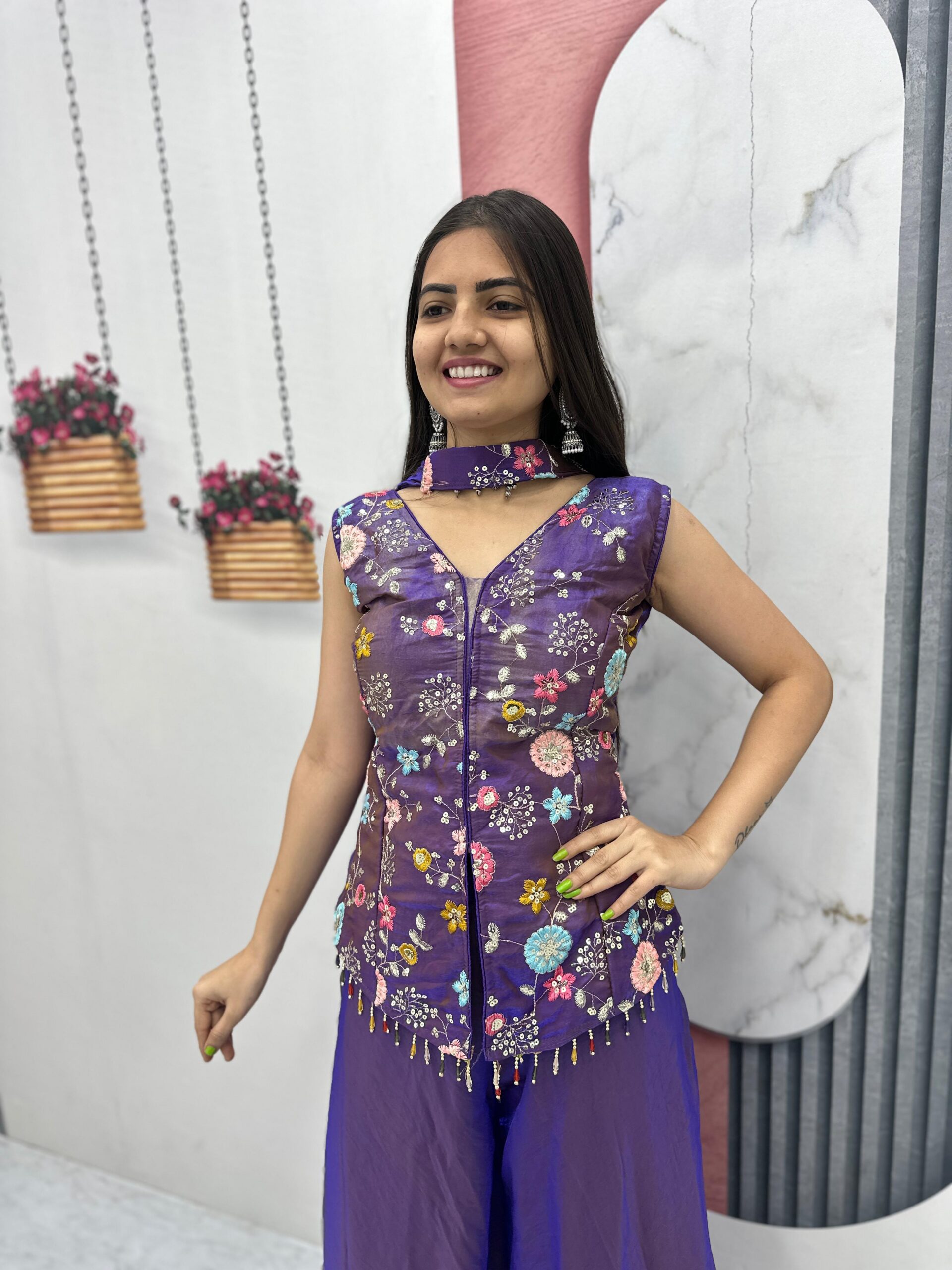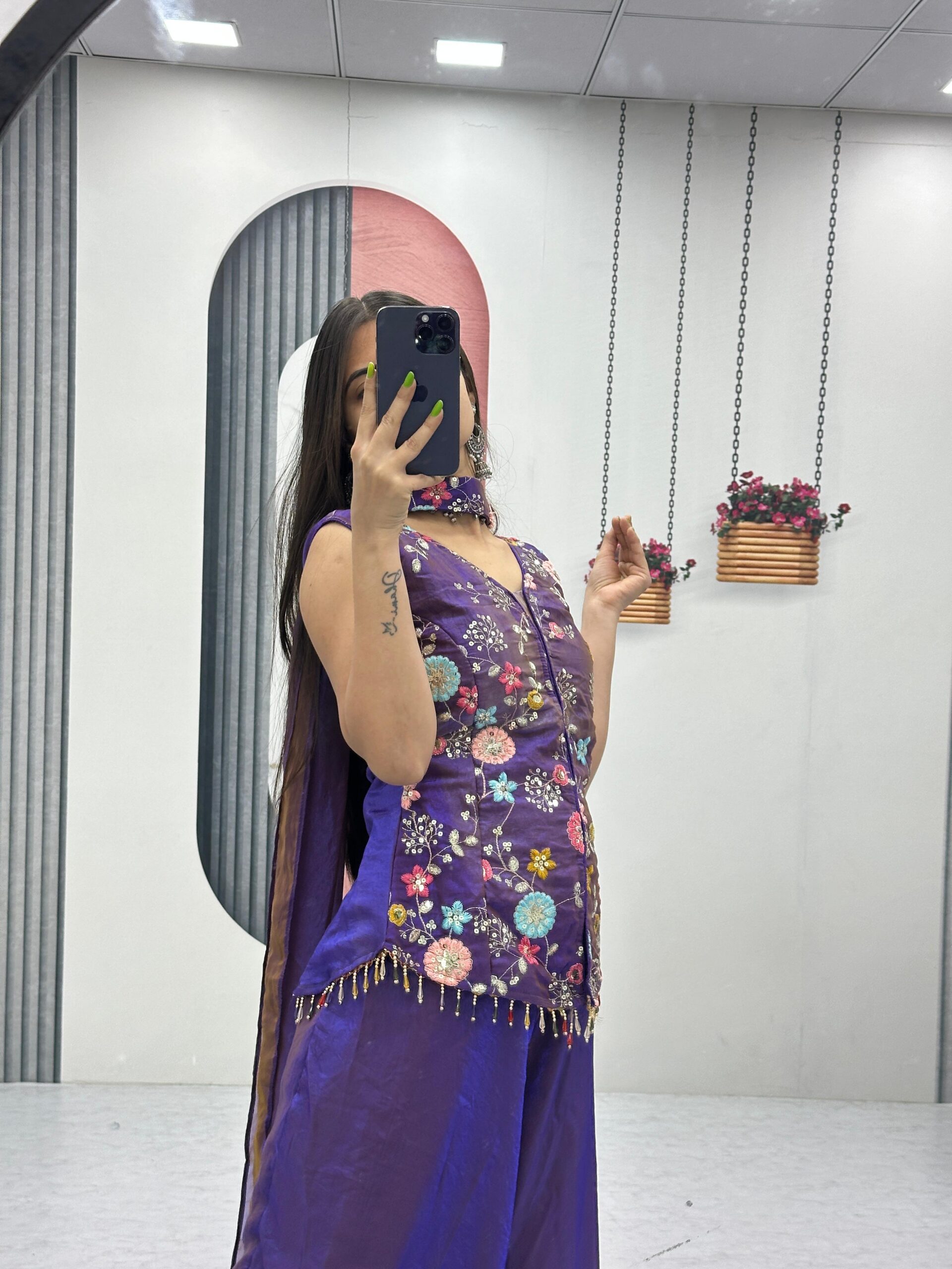 Angelic Purple Tissue Simmer Embroider Work Salwar Suit