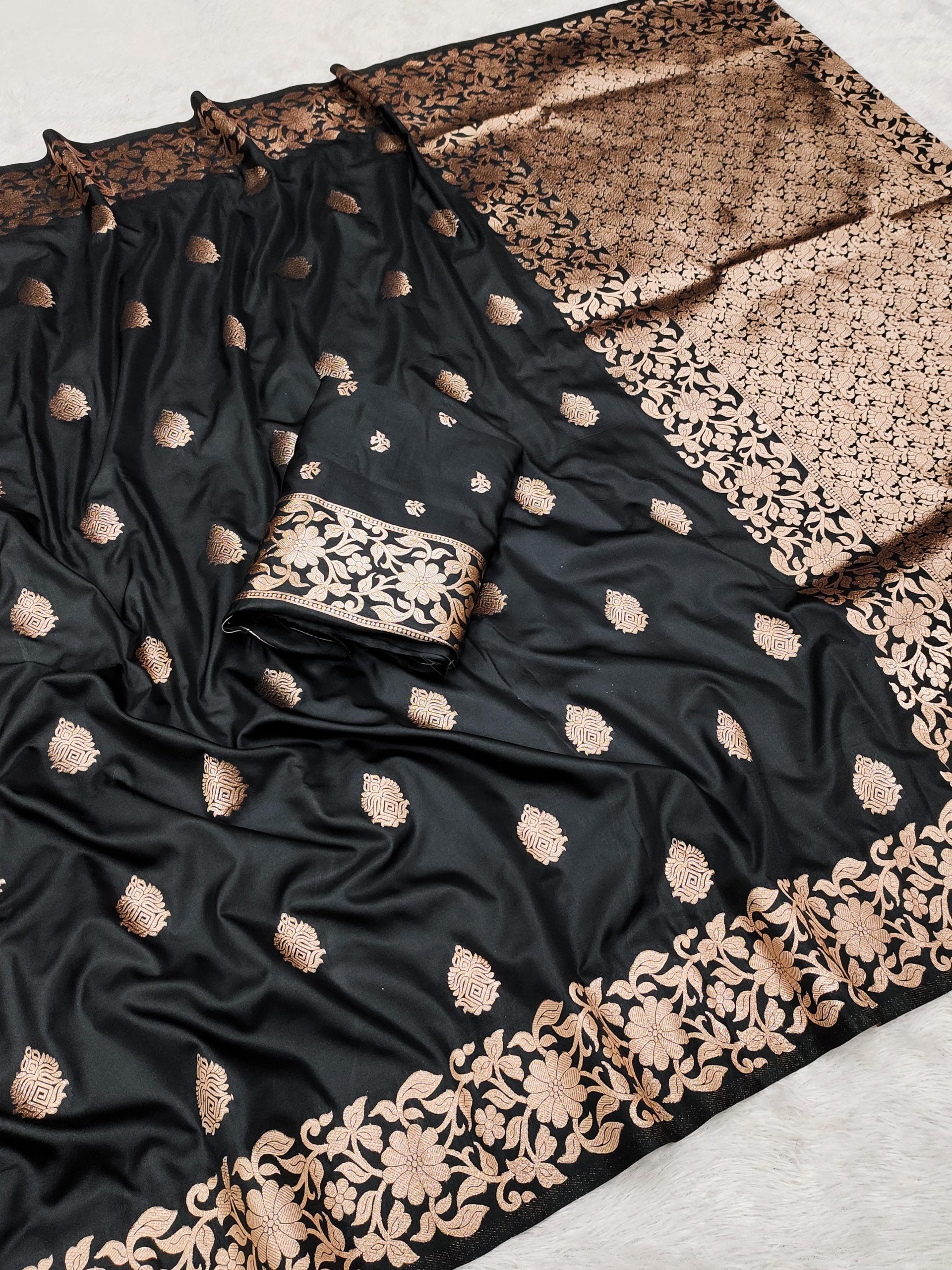 Black Banarasi Silk Lace Zari Work Saree