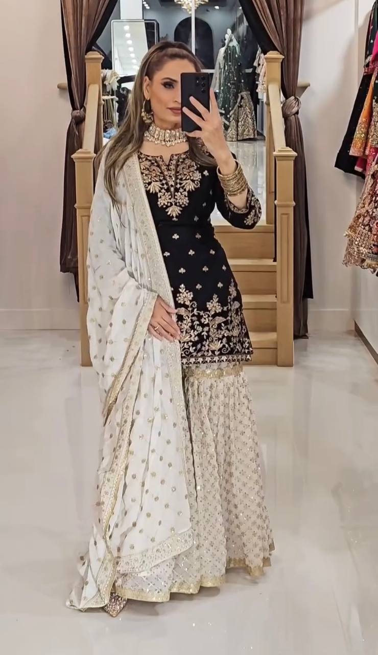 VLM 264 Black in Fox Georgette Embroidery Work & Lace Work Salwar Suit . Best Price ₹2399. Delivery 4-6 Working Days. Shop now. | Designer Suits, Jump Suits, Tops & Bottoms, Track Suits, Trendy Wear, Casual Suits, Creative suits, Palazzo Suits, Party Wear Suits, Patiala Suits, Salwar suit, Straight Suits