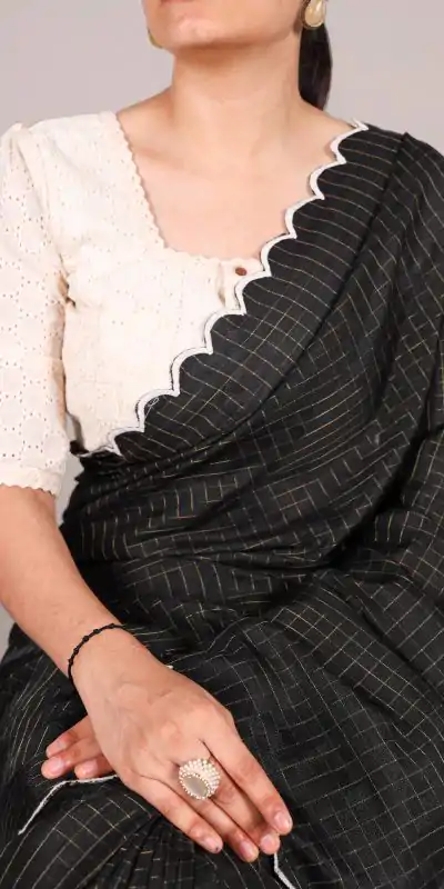 Saree Saree fabric : Gadhawal Chex Saree work : Arca Work Saree length : 5.5 meter Blouse (Stitched) Blouse Fabric : Cotton Blouse work : Lucknowi Work Blouse Size : Fully Stitched Size is 40 there Extra Margin So Customer Can Adjust from 38″ to 42″ Blouse Length : 15 Sleeve Length : 13 |