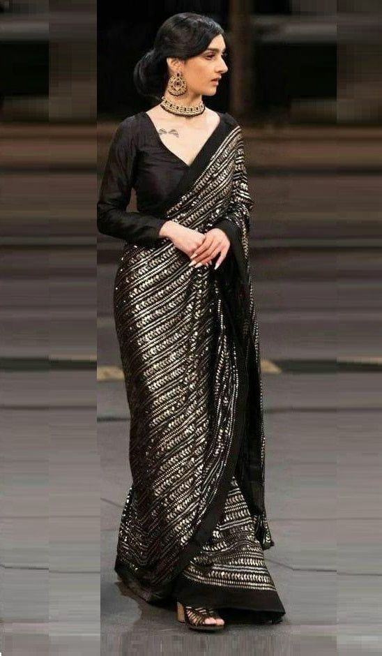 Black Georgette With Sequence All Over Saree