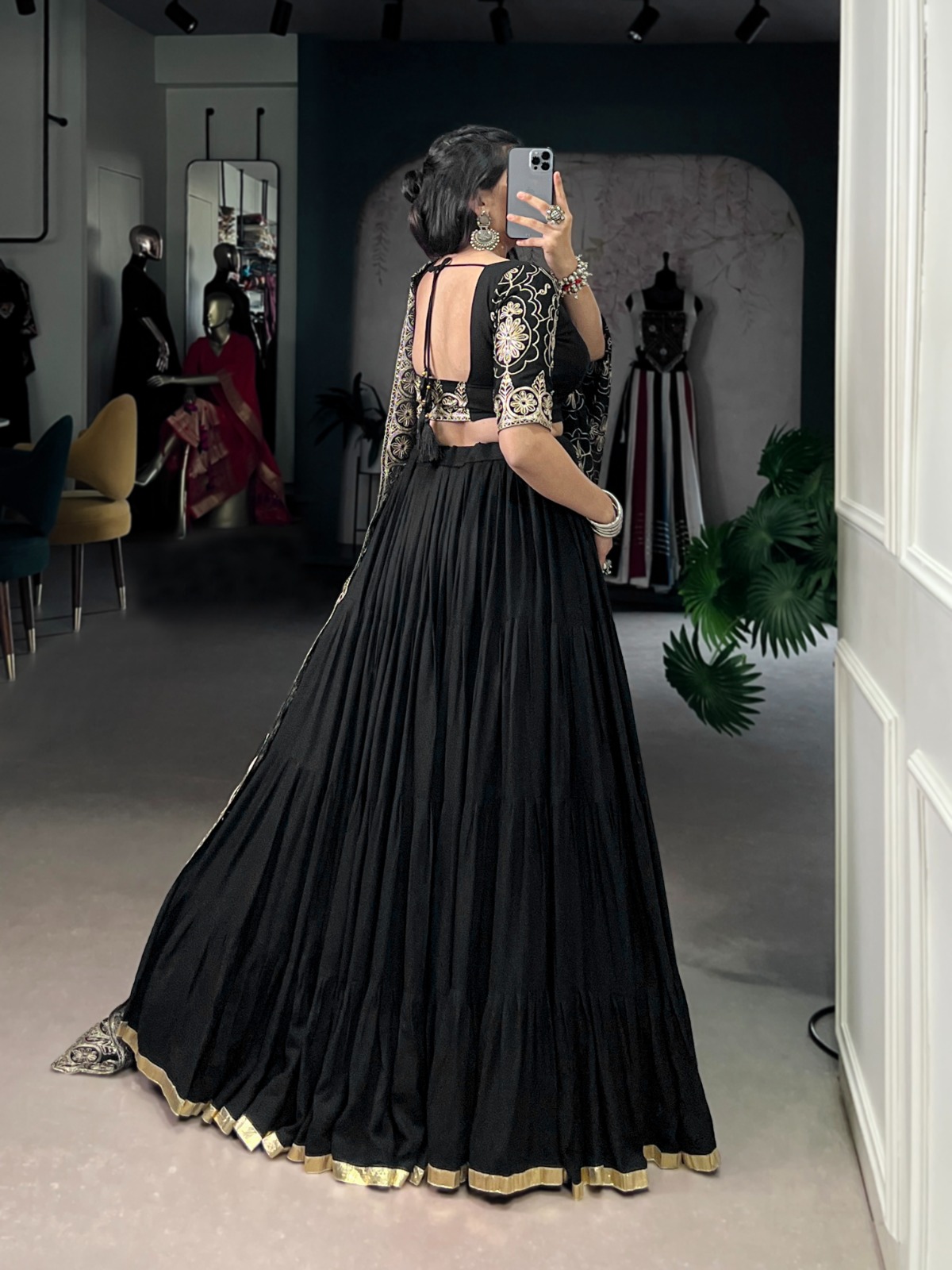 Black Rayon With Zari Work Lehenga Choli