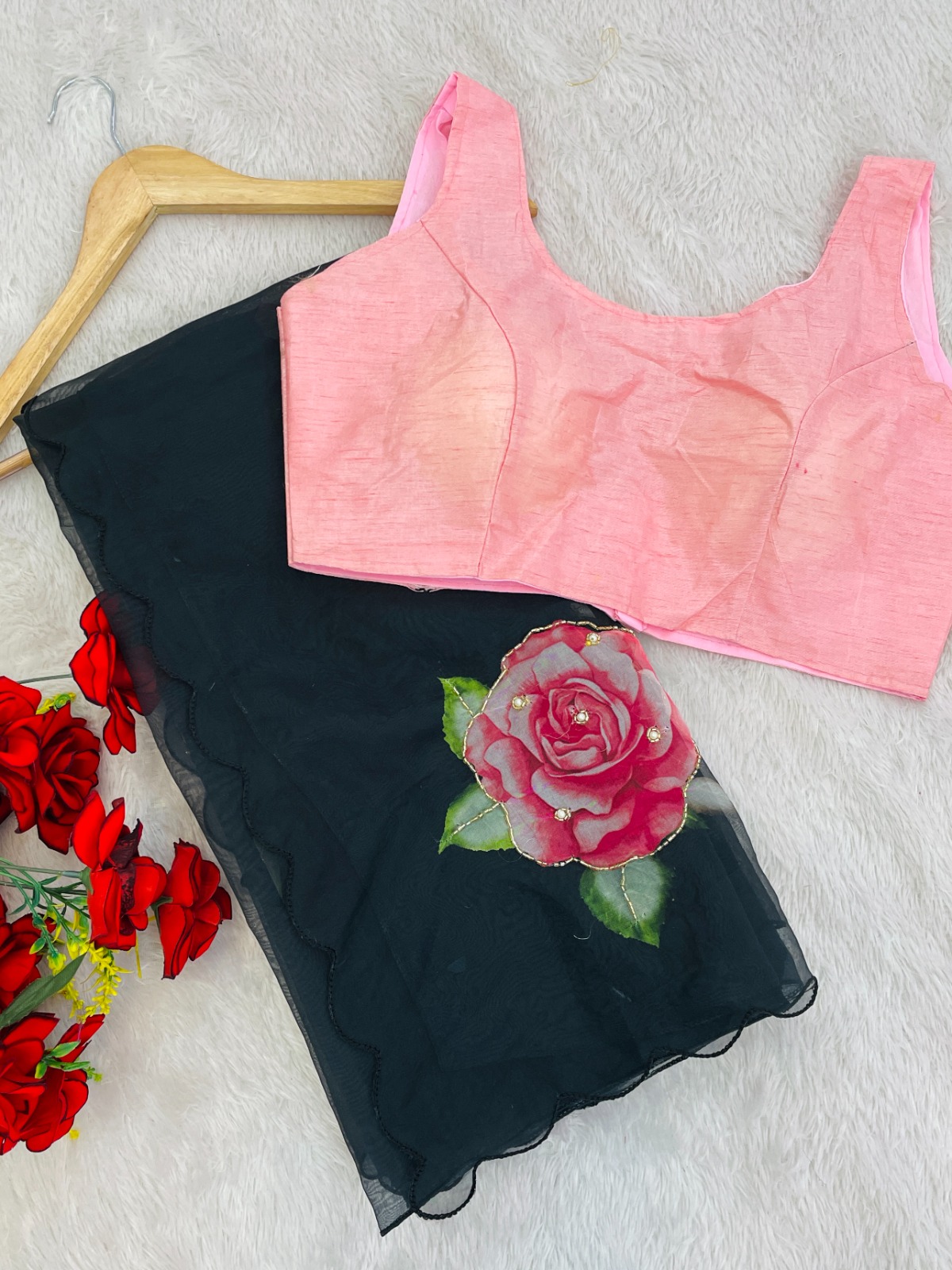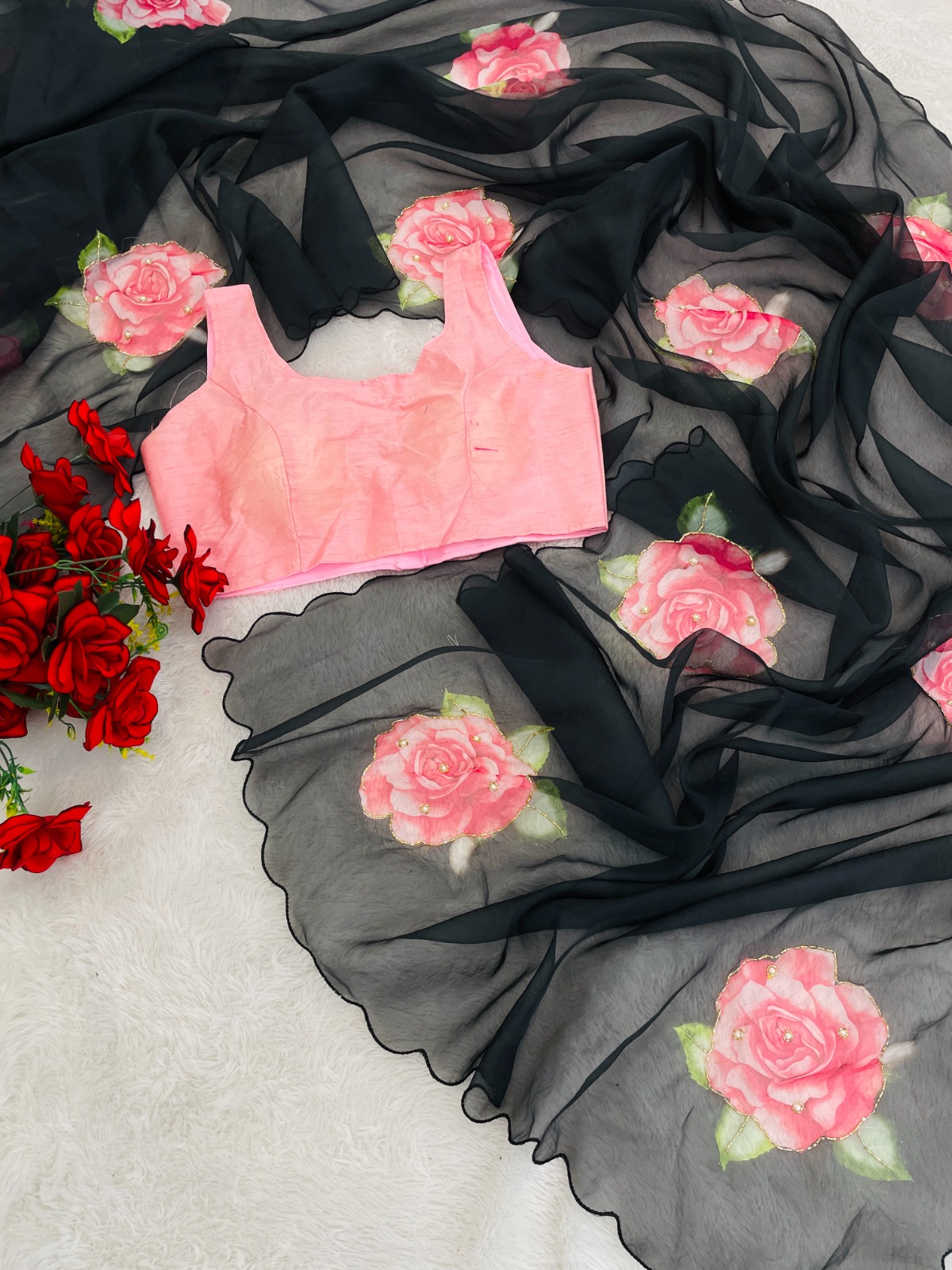 BT 412 Black TB Organza Saree with Digital Print. Wedding, Party, Festive, Events, Navratri Garba, Special Price ₹1649. Delivery 4-6 Working Days. Shop now. | Bollywood Sarees, Creative Sarees, Designer Sarees, Embroidered Sarees, Ethnic Saree, Modern Digital sarees, Party Wear Sarees, Sarees