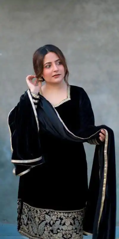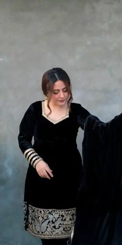 Black Viscose Velvet with Embroidery Salwar Suit