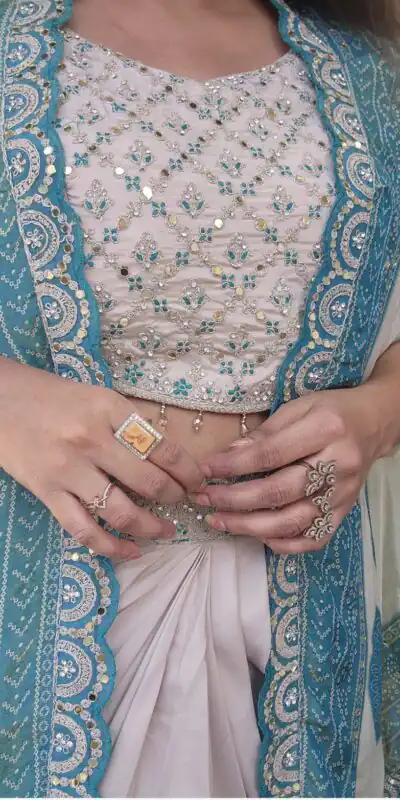 Work: -; Bandhani Print With Real Mirror & Embroidery Lace Work |