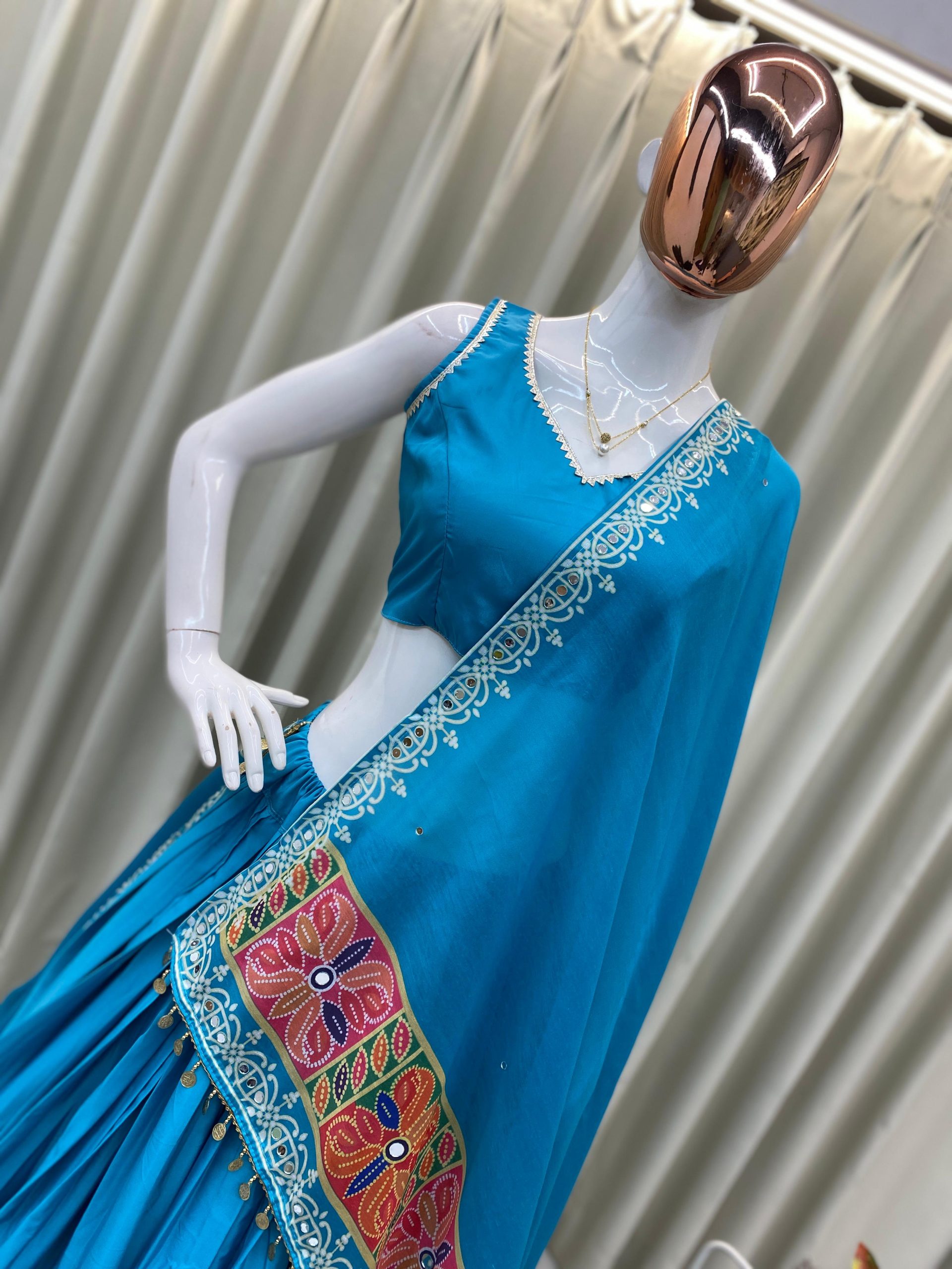 Blue Crape Silk Mirror Work Lehenga Choli