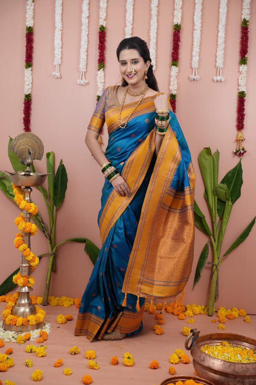 Blue Silk Paithni Weaving Zari Work Saree