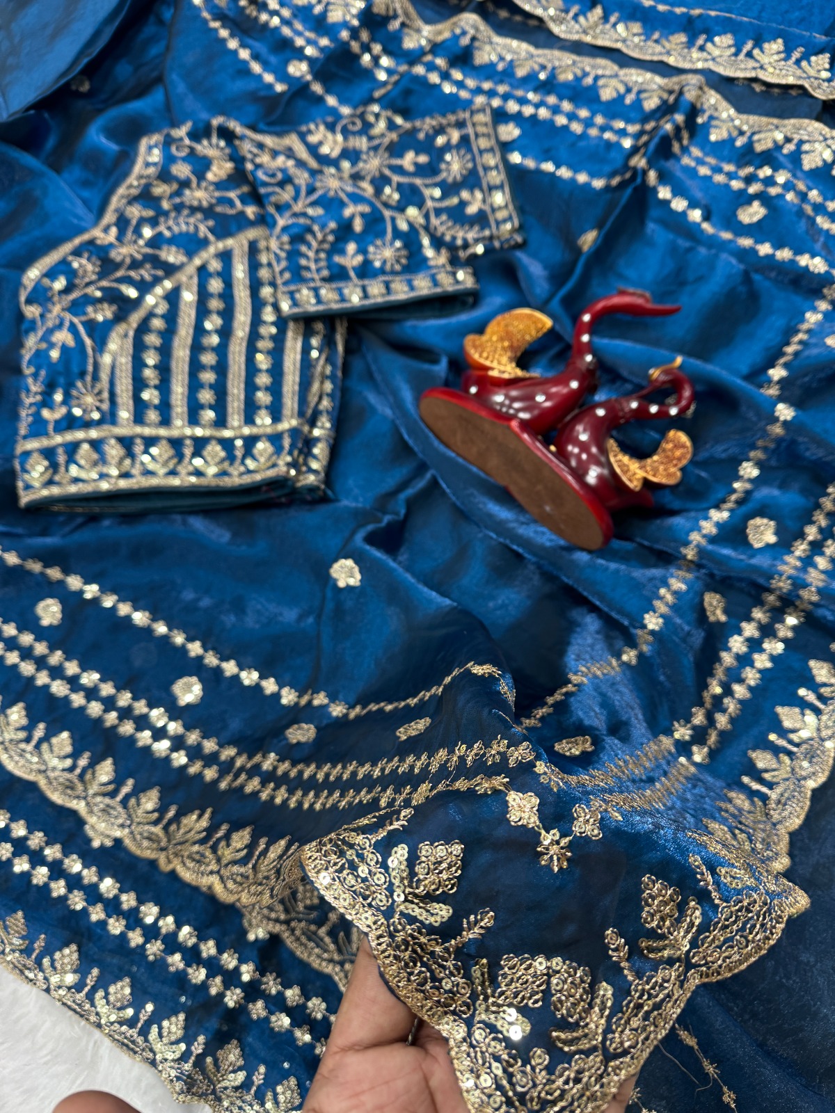 Saree Fab. :* Soft Space Silk Work : Sequence And Zari Embroidery Work Blouse* Space Silk With Sequins Embroidery Work ( Un stitch Blouse) |
