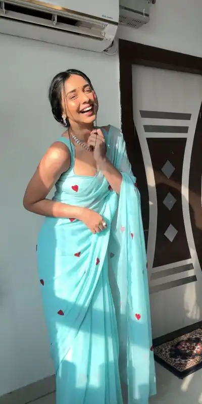 SC 221 Sky Blue Color Georgette silk with embroidery red color heart design Saree Casual, Wedding, Festive, Events . Expected Delivery 4-6 Working Days @1549/- only