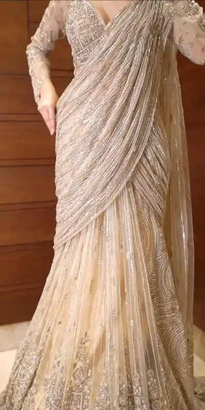 Fabric Details:- Blouse: Full Stitch Fabric : Butterfly Net Sequence Embroidery Work Inner : Micro Height: 14” Inch Size : Free Size Saree: Ready To Wear Fabric:.butterfly Net With Sequence Embroidery Work Free Size Height : 43””inch |