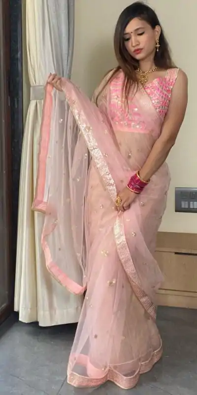 BT 286 Pink Color Nylon Butterfly Net Fancy Multi Thread Lace With Sequins Work Saree Casual, Wedding, Festive, Events . Expected Delivery 4-6 Working Days @1449/- only