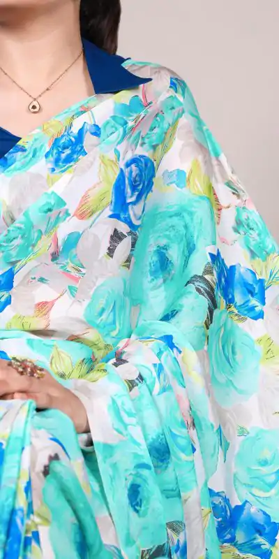 Firozi Dull Satin Printed Saree