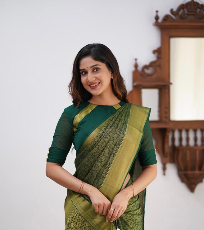 Green Lichi Silk Border Jacquard Work Saree