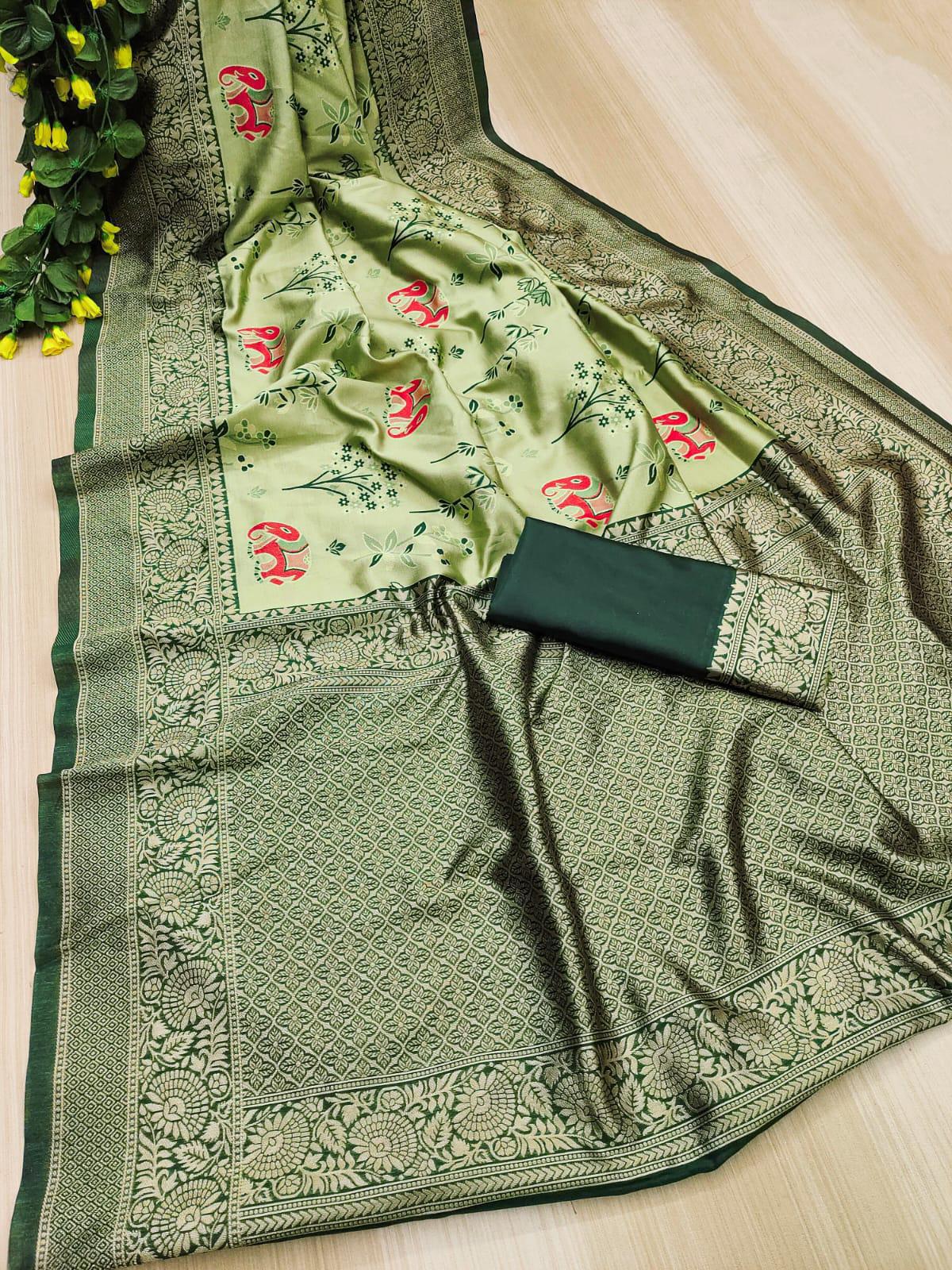 Green Soft Lichi Silk Jacquard Saree