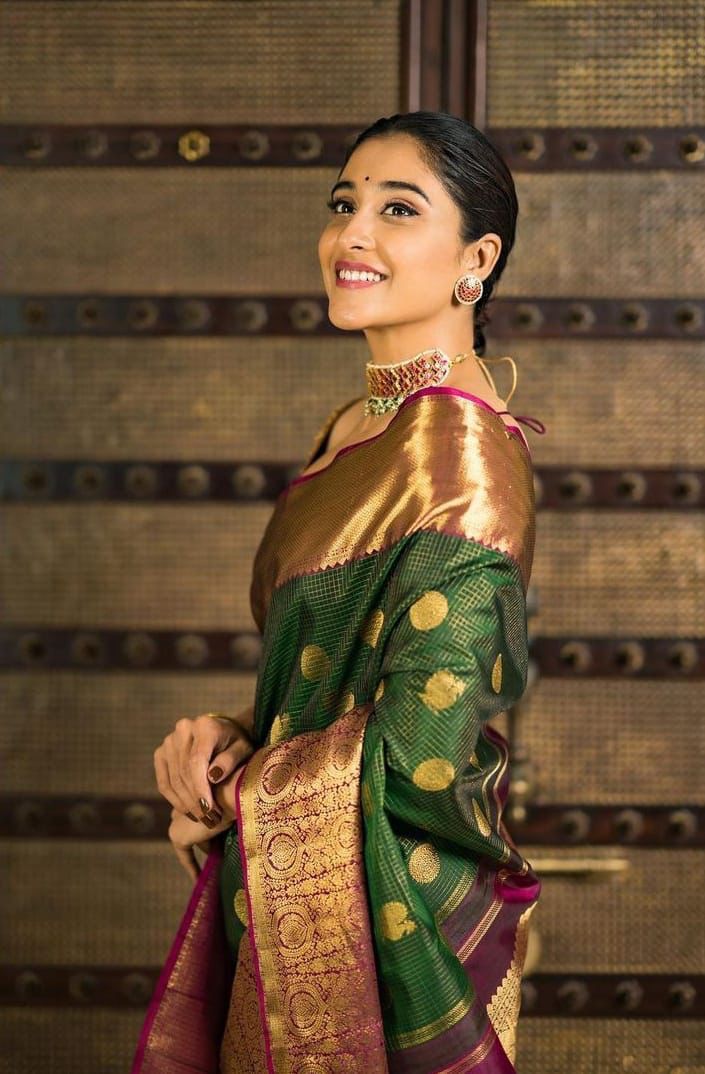 5. Vibrant hues and intricate motifs give this saree a festive, elegant look.