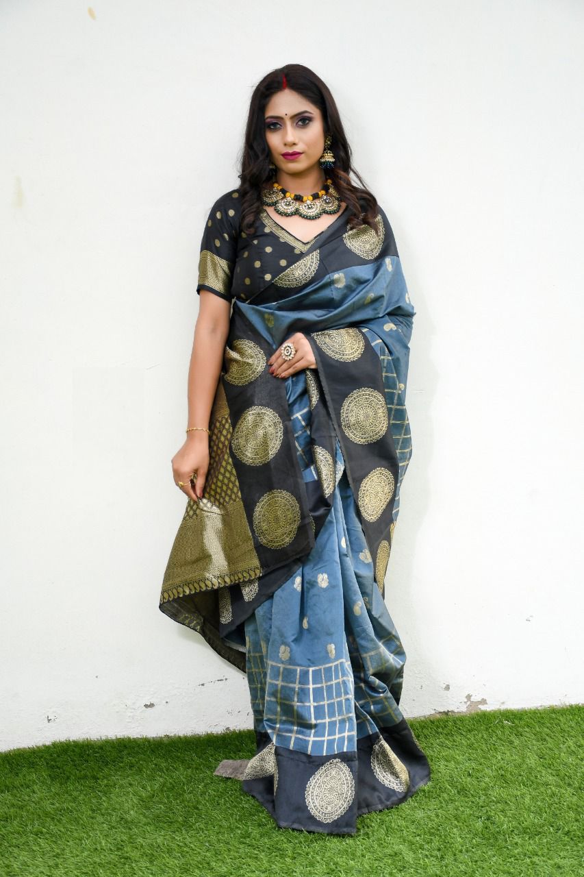 Grey Lichi Silk On All Over Border Saree