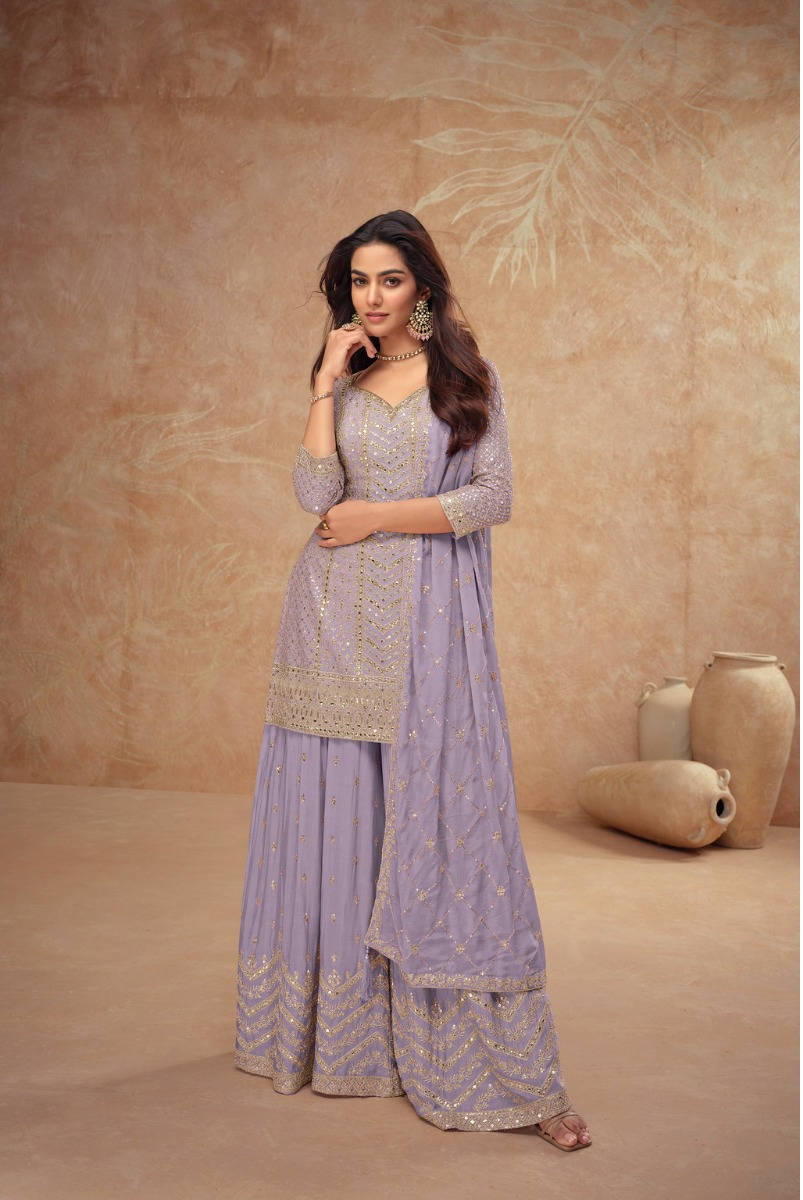 Top :- Heavy Chinon With Sequence Embroidery Stitch Work