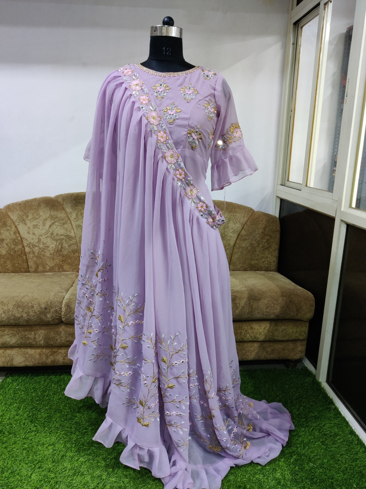Lavender Georgette Mirror Original Mirror Work Gown
