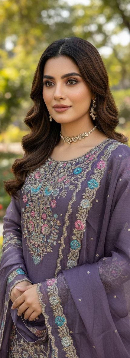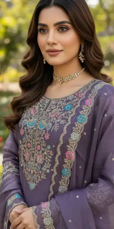 Lavender Organza Silk Sequence Moti Work Salwar Suit