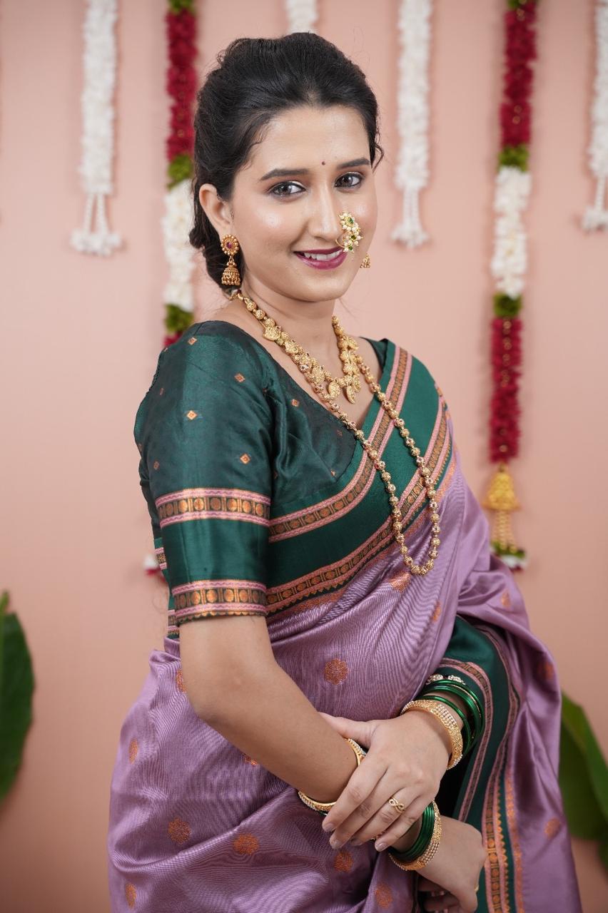 Lavender Silk Paithni Weaving Zari Work Saree