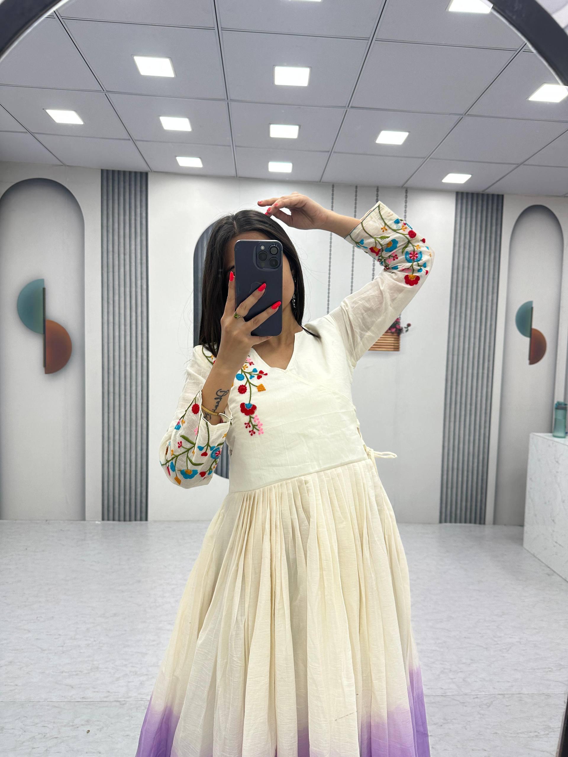 PC 526 Lavender Soft Cotton Gown with Embroidery Work. Wedding, Party, Festive, Events, Best Price ₹1749. Delivery 4-6 Working Days. Shop now. | Bollywood Gowns, Creative Gowns, Designer Gowns, Embroidered Gowns, Gowns, Party Wear Gowns