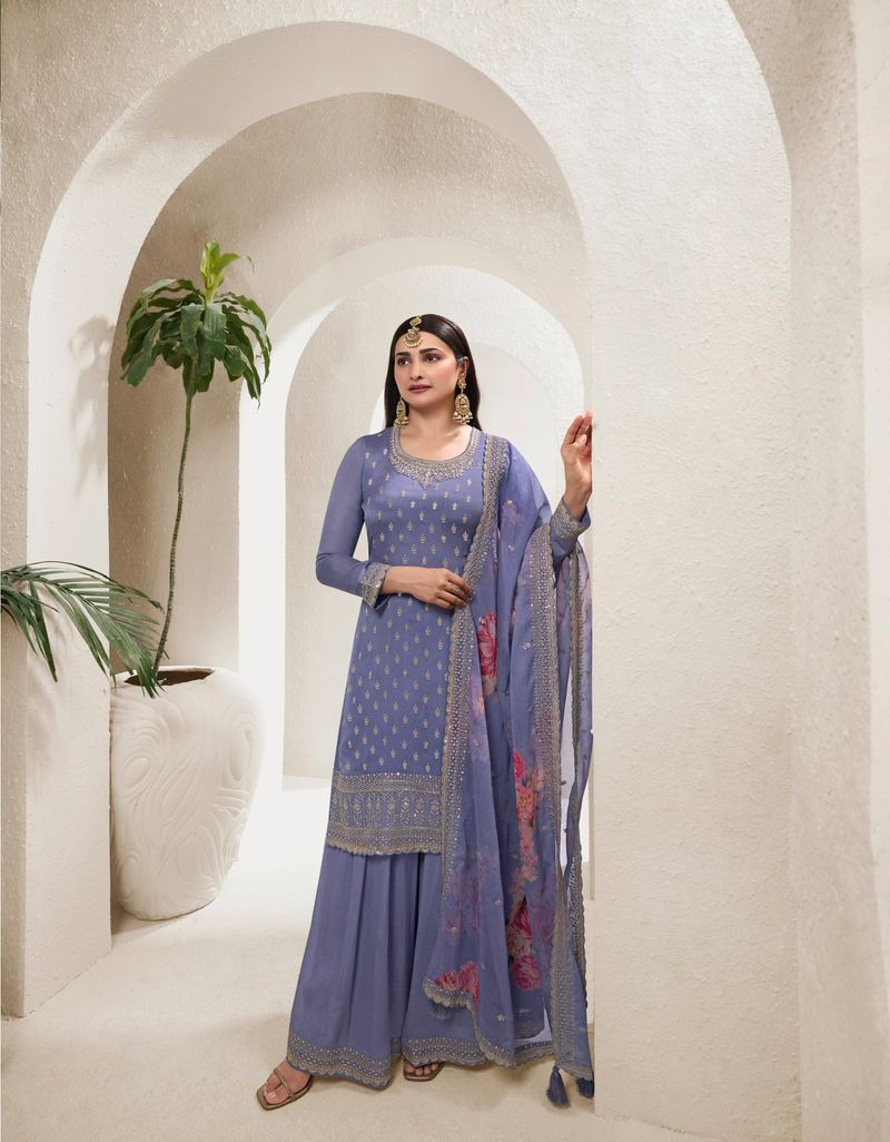 Fabric Details Top Fabric:-Viscose Chinon & Embroidery Dhaga, Zari,Sequence Work Inner:- Crepe Fabric Top Size-Free Size Semi Stitched Top Height- 42 Palazzo Fabric:-Viscose Chinon & Embroidery Dhaga, Zari,Sequence Work Palazzo Size-48 Palazzo Height-43 Palazzo Flare-2 M Inner:- Crepe Fabric Dupatta Fabric:-Viscose &Embroidery &Sequence Work + Digital Print Dupatta Length-2.20 M |