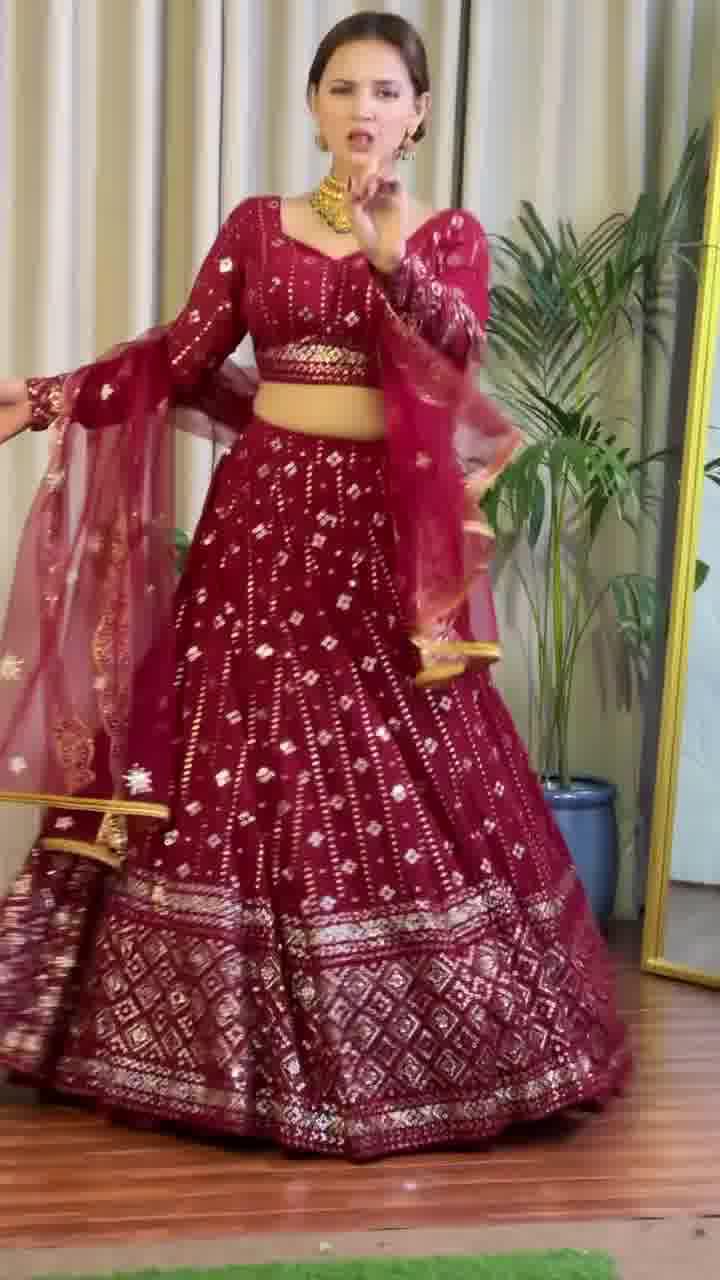 Maroon Fox Georgette Sequence Work Lehenga Choli