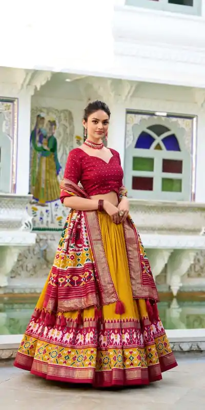 Mustard Tasar Silk Patola Print Gotta Patti Lehenga Choli