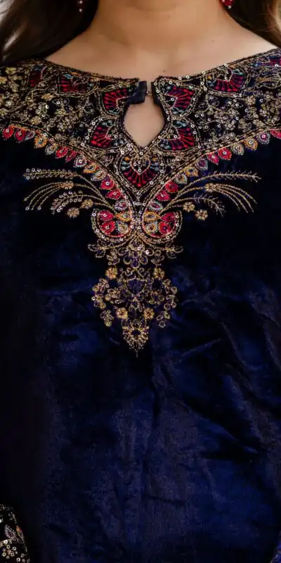 Navy Blue 9000 Velvet Embroider Lace Work Salwar Suit