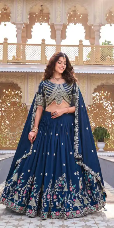 Navy Blue Vichitra Silk Thread Embroider Work Lehenga Choli