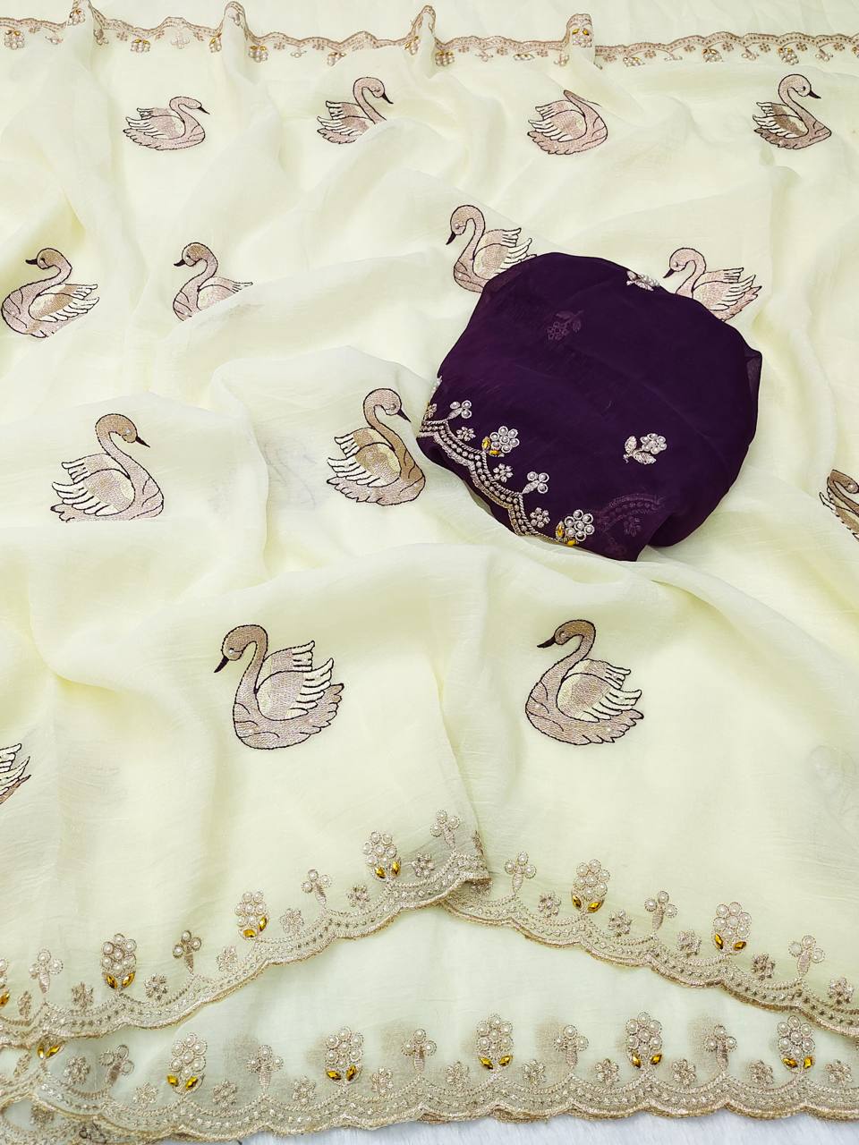 BT 1284 Off White Crunchy Chiffon Saree Perfect for Wedding, Party, Ethnic Day, Ganesh Chaturthi, Sangeet . Best Price ₹1799. Delivery 4-6 Working Days | Bollywood Sarees, Creative Sarees, Designer Sarees, Embroidered Sarees, Ethnic Saree, Modern Digital sarees, Party Wear Sarees, Sarees