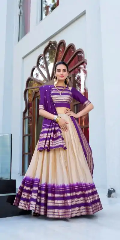 Off White Pure Chanderi Zari Work Lehenga Choli