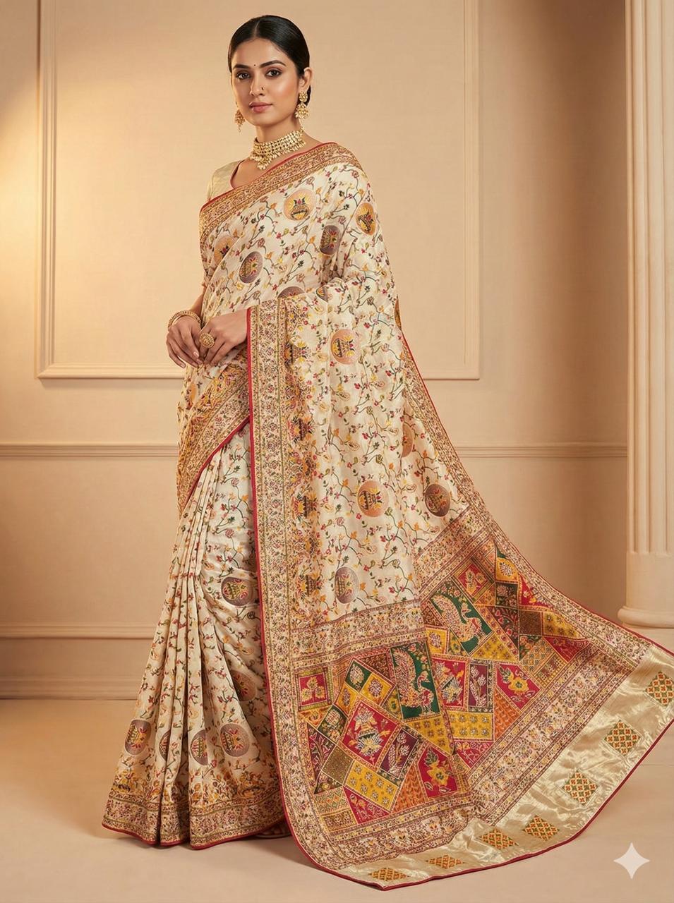 5. The border work is exquisite and complements the saree beautifully.