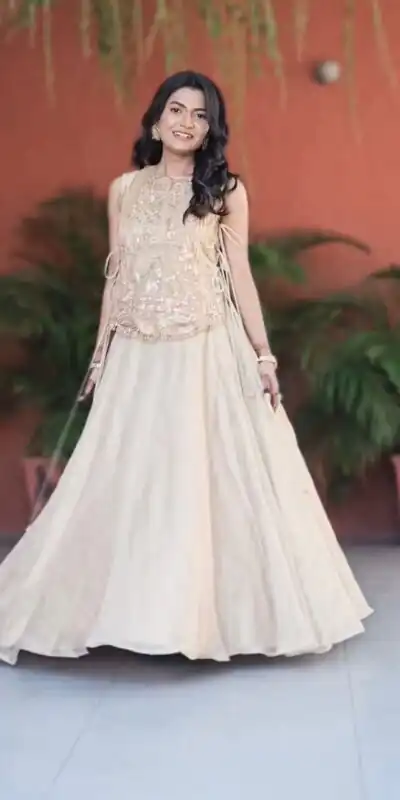Off White Vichitra Silk Embroidery Work Lehenga Choli