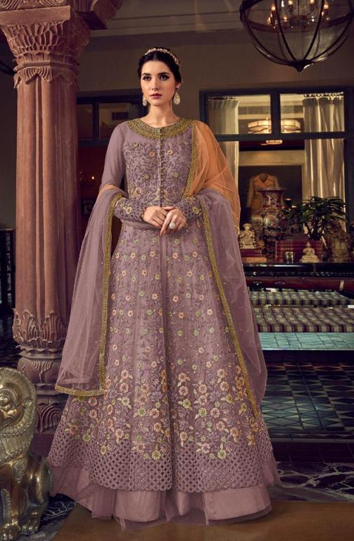Inner :- japan satin silkLength :- Max up to 54Flair :- 3. mtr Type :- Semi Stitched ( Material )Size :- Free Size Semi Stitched Bottom :- japan satin silk Dupatta :- Heavy Net |
