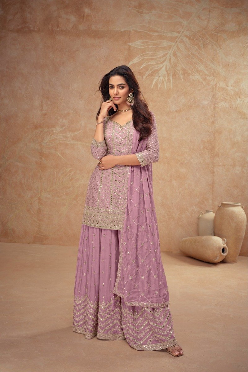 Top :- Heavy Chinon With Sequence Embroidery Stitch Work