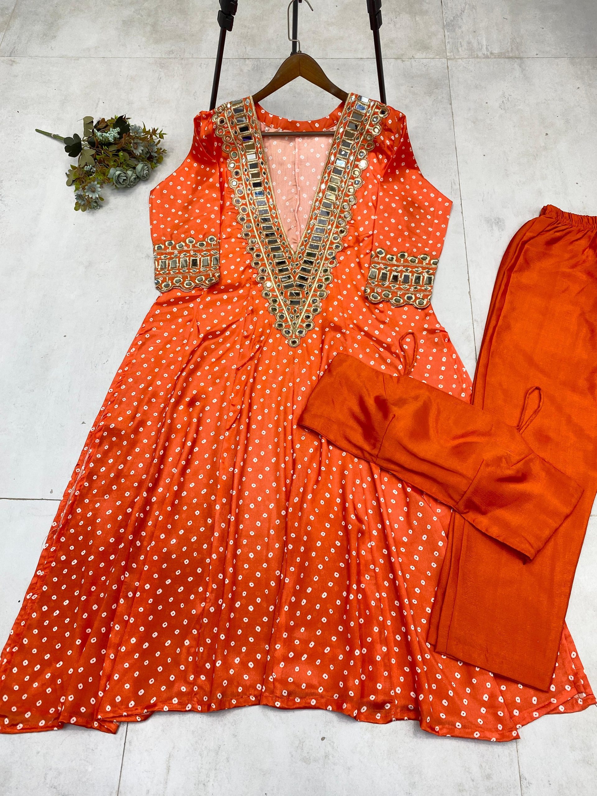 Fabric:.digital Printed Chinon With Real Mirror And Embroidery Work