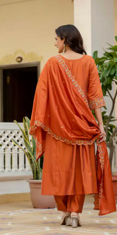 Orange Viscose Roman Silk Mirror Work Anarkali Suit