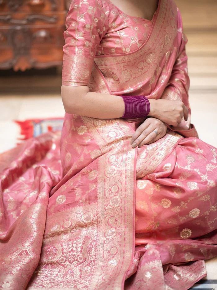 Peach Soft Lichi Silk With Jacquard Work Saree