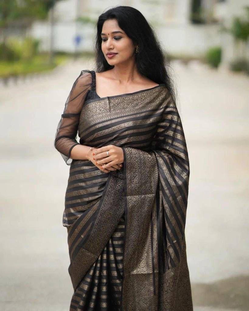 Black Soft Silk Saree with Pallu Work