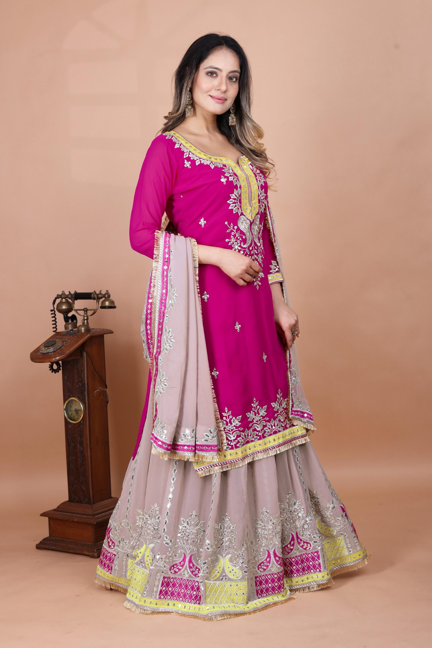 Sharara Fabrics :Heavy Faux Georgette With 5mm Embroidery Sequence Work