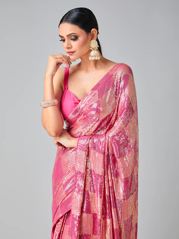 DF 3426 Pink Color Georgette 5MM Sequins Embroidery Work Saree Casual, Wedding, Festive, Events . Expected Delivery  4-6 Working Days @1749/- only                                                 | Bollywood Sarees, Creative Sarees, Designer Sarees, Embroidered Sarees, Ethnic Saree, Modern Digital sarees, Party Wear Sarees, Sarees
