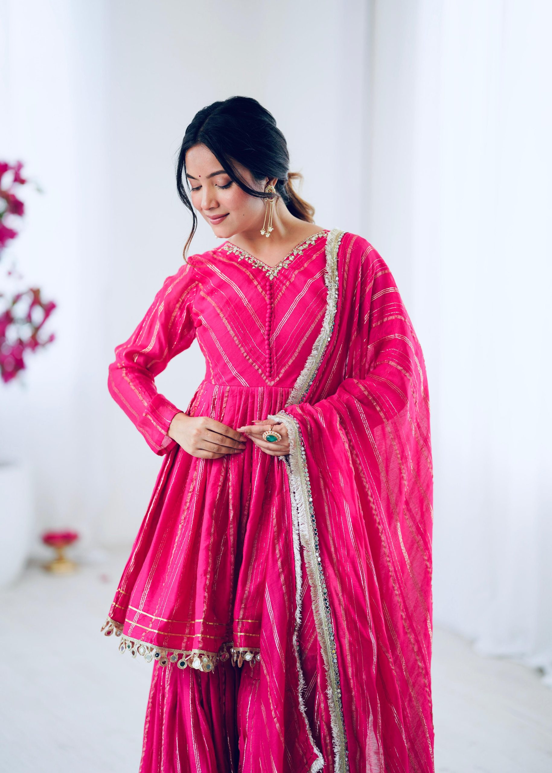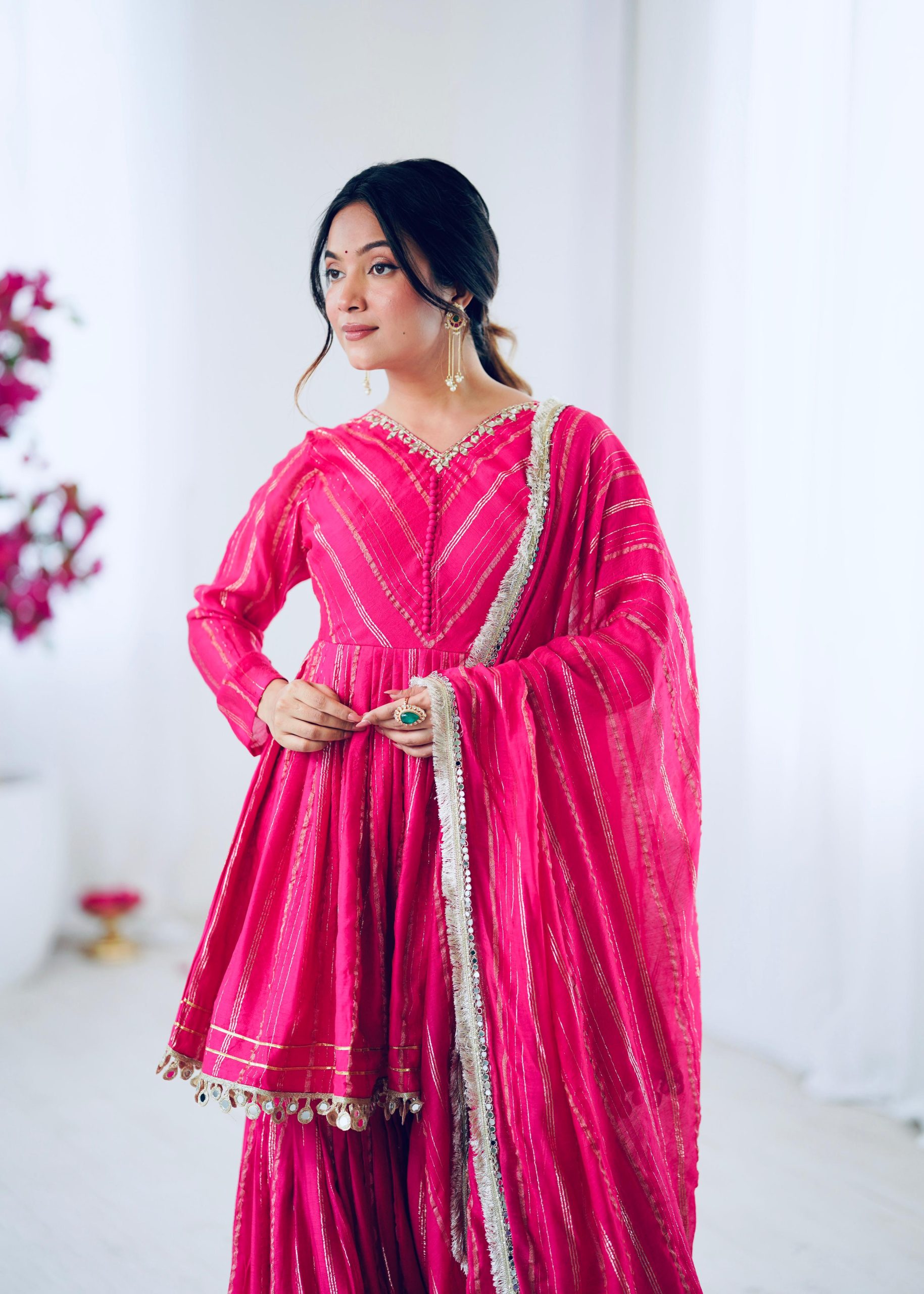 Pink Mal Chanderi Mirror Work Salwar Suit