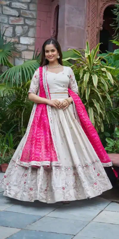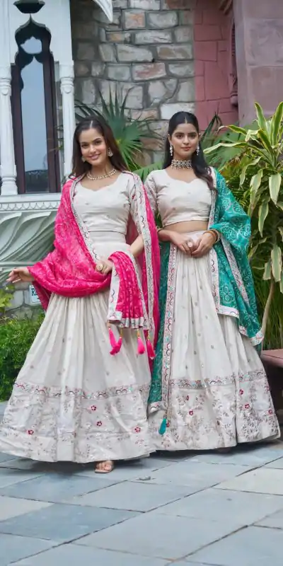 1 Lehenga :: 1 Blouse :: 1 Dupatta :: Drawstring with Zip |