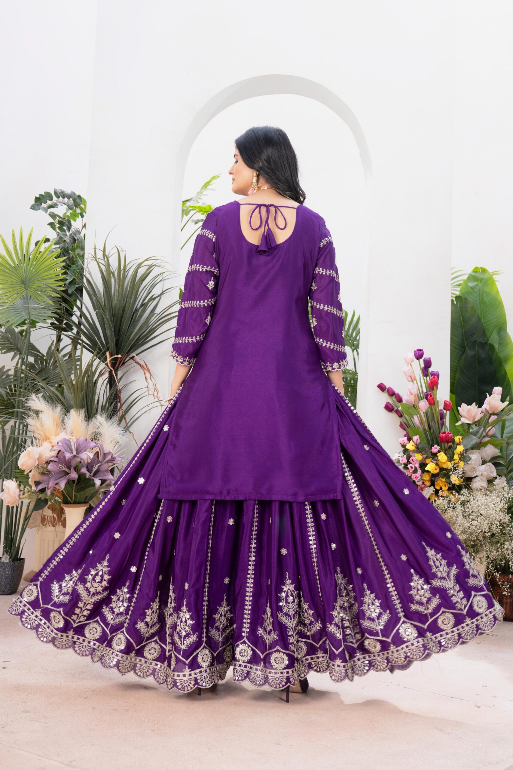 Dark Purple Chinon Silk Embroider Lace Work Salwar Suit