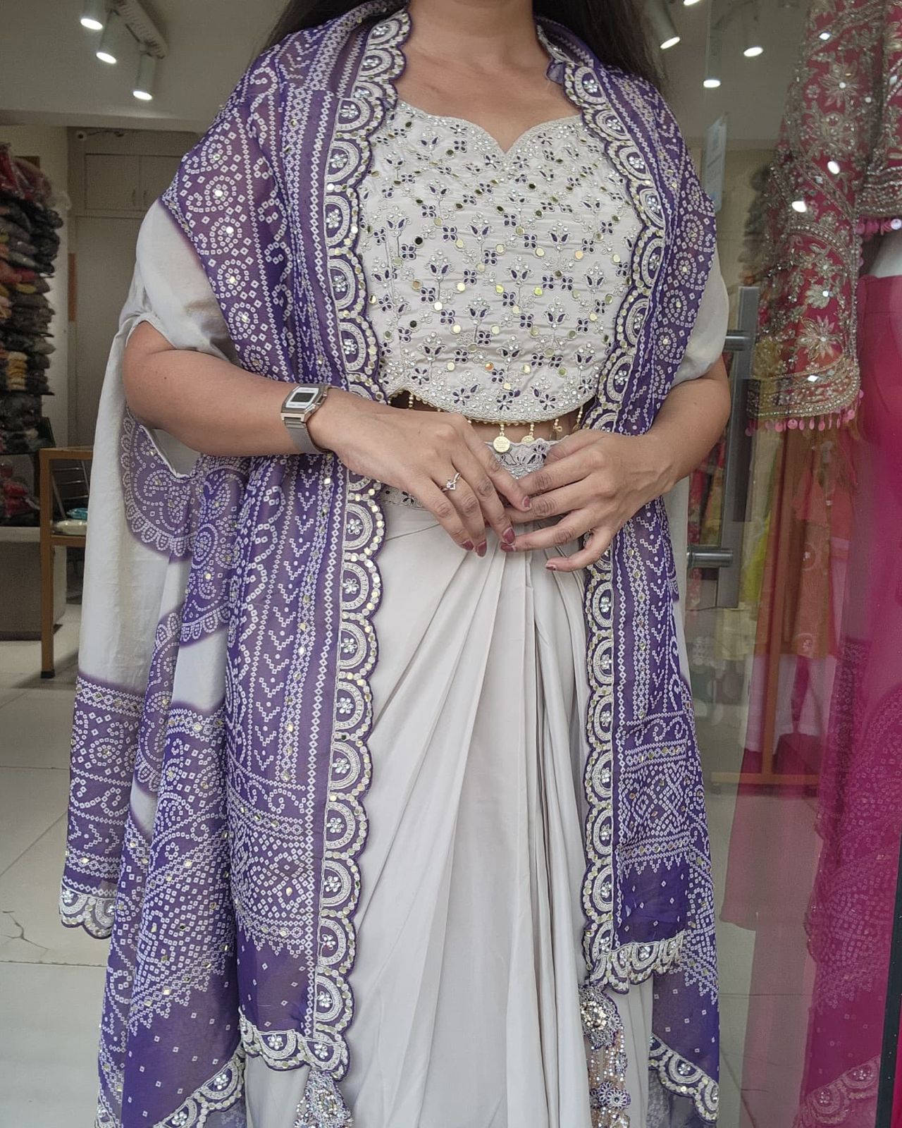 Purple Crap Silk Embroidery Mirror Work Dhoti Suit