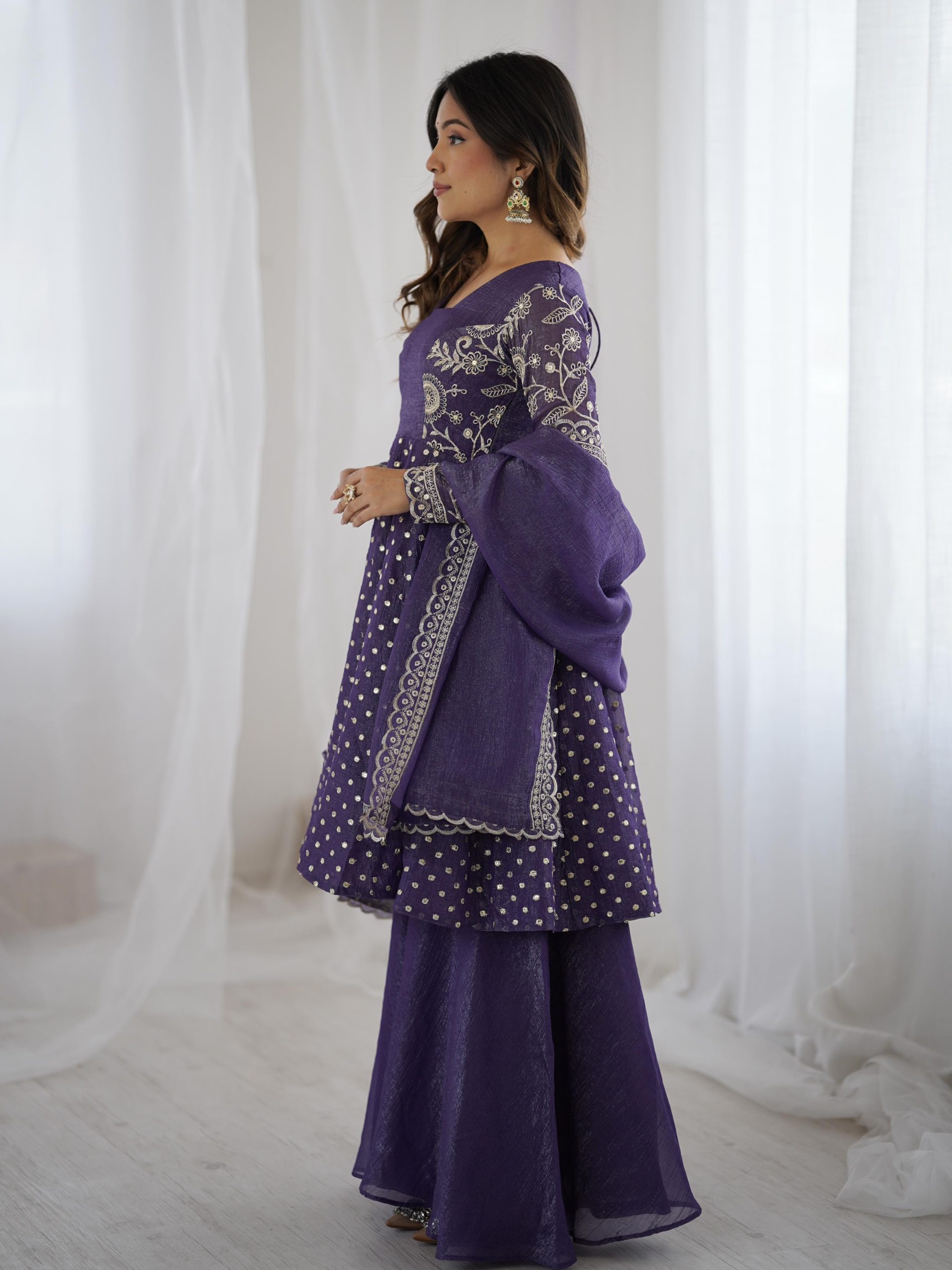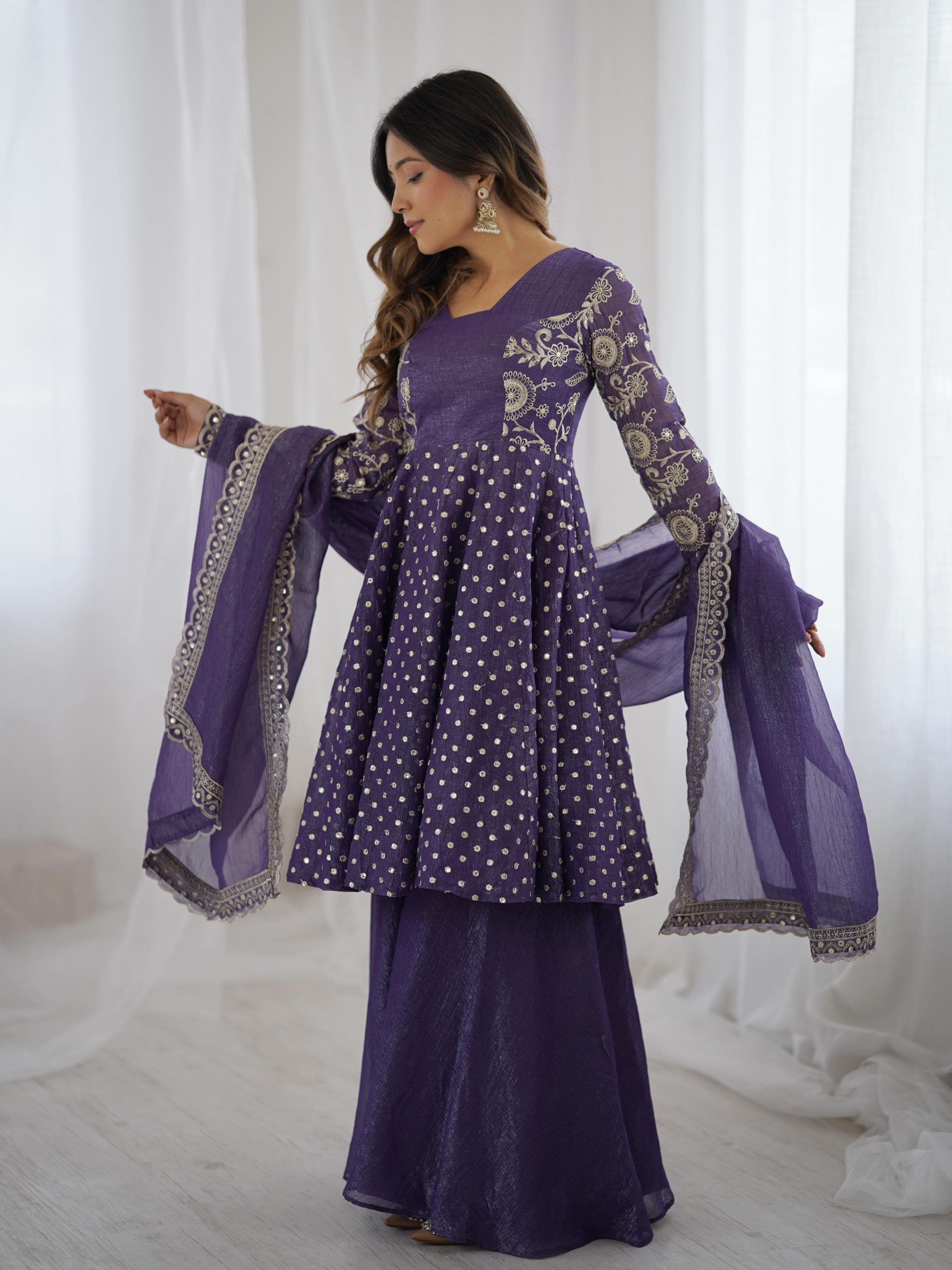 Purple Crunchy Silk Embroidery Work Salwar Suit